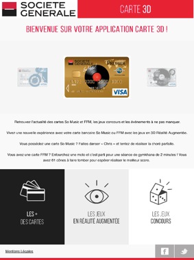 Paris, le 10 juin 2014 –Société Générale innove en lançant avec LSFloyalty l’application Carte 3D pour jouer en Réalité Augmentée avec les cartes Collection So Music et FFM.