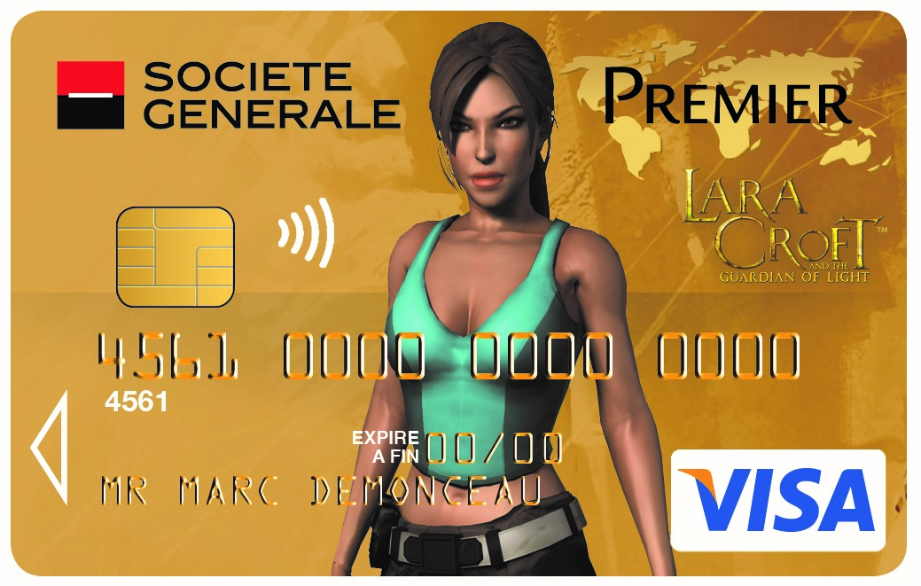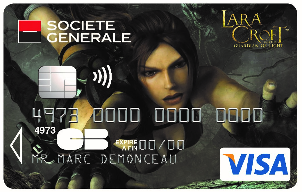 En 2014, Société Générale inaugure ainsi une nouvelle Collection Gamers avec deux nouvelles cartes exclusives à l’effigie de Lara Croft, célèbre héroïne des jeux vidéo Tomb Raider, repris par la suite au cinéma.